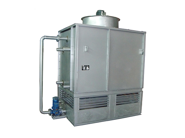 蒸發(fā)冷卻器可以看作是以水作為冷卻介質(zhì)的冷卻器與冷卻塔的組合式換熱器。通常,在工業(yè)上為節(jié)省水冷式冷卻器的用水,采用把水在冷卻塔中冷卻,循環(huán)使用。而蒸發(fā)冷卻器則把冷卻器和冷卻塔組合為一體,被冷卻的工藝流體在管內(nèi)流動,水和空氣同時在管外流動,管內(nèi)流體的熱量通過管外的水傳給空氣,達到冷卻的目的??諝鈴恼舭l(fā)冷卻器下部的四周被吸入,從水平布置的傳熱管束間隙中通過,冷卻水用循環(huán)水泵從蓄水池吸入并噴淋到傳熱管上,其中一部分水蒸發(fā),剩余的水匯集到蓄水池中,與補給水一起供循環(huán)使用。工藝流體自管束的上聯(lián)箱進入管束,從下聯(lián)箱流出。